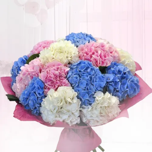 Букет из разноцветных гортензий