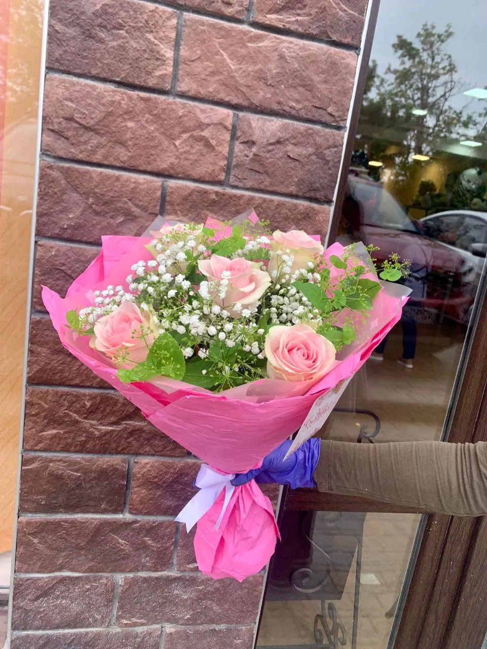 • Мини - роза - 5 шт., гипсофила, упаковка, лента