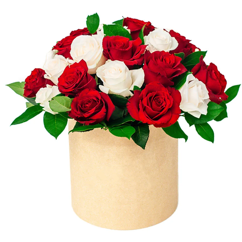 - Стандарт - роза - 11 шт.,зелень, оазис, шляпная коробка
