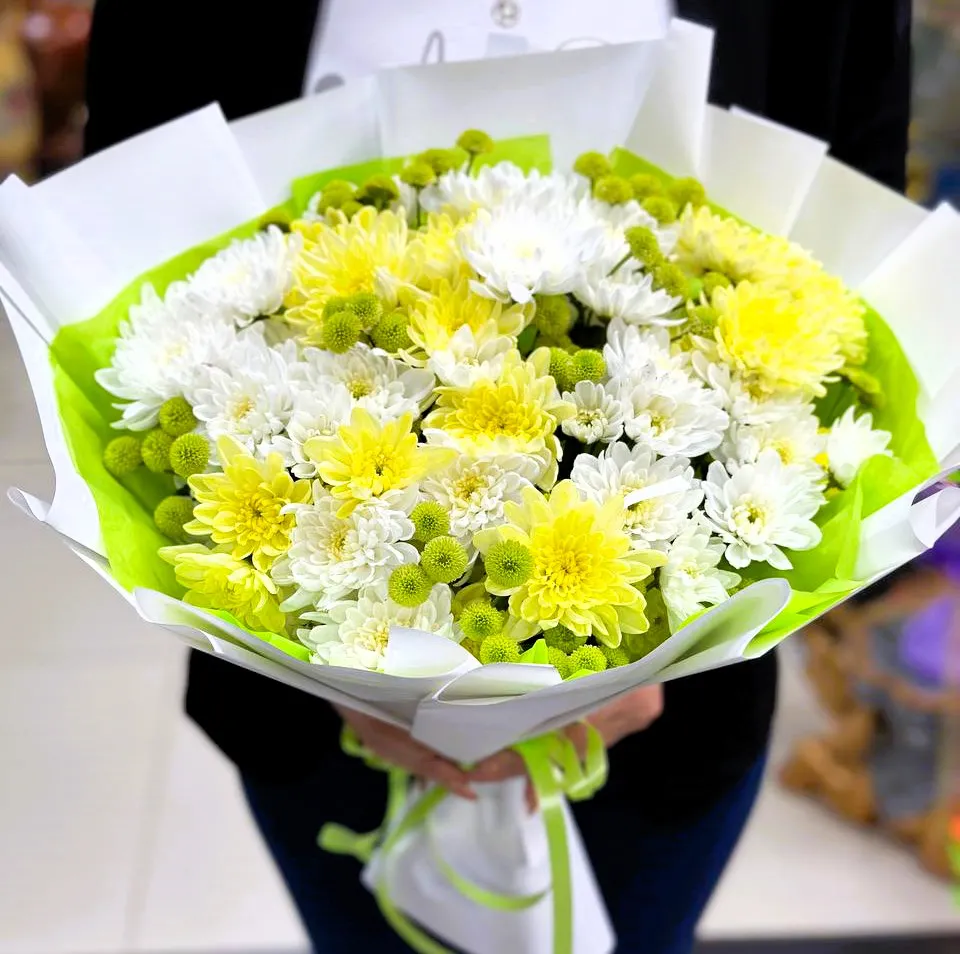 Закажите букет из желтых и белых хризантем, и вы подарите не только цветы, но и положительные эмоции, наполняющие сердца радостью и счастьем.